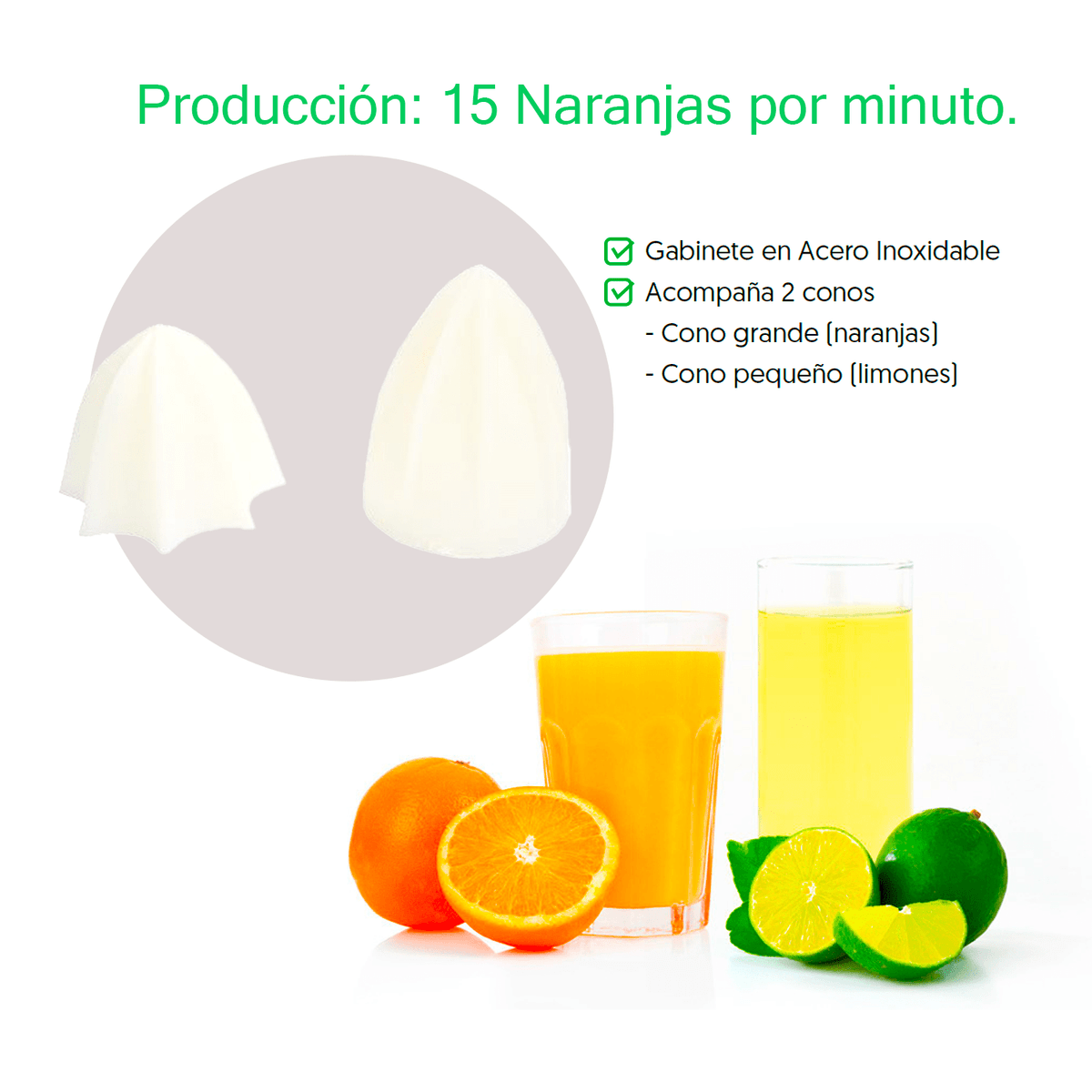 • Alta productividad en jugos de frutas cítricas.