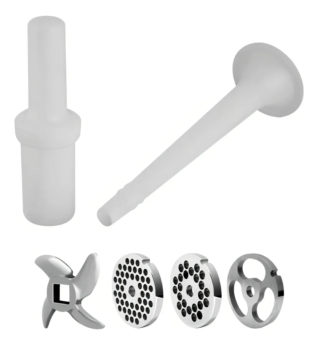 - Incluye 3 cedazos de acero inoxidable: 6 mm, 8 mm y 1 para cortar carne.